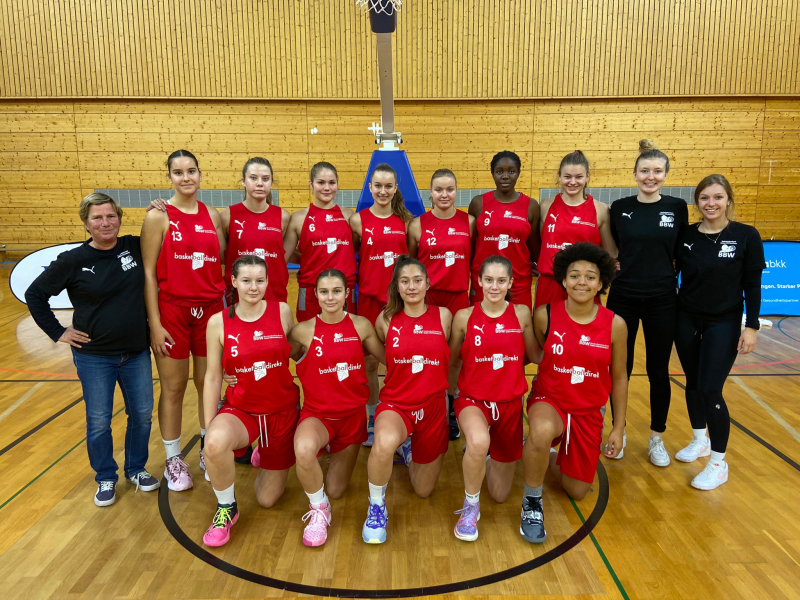 h.R.v.l.n.r.: BBW Landestrainerin Alexandra Maerz, Diana Ivancic (Regioteam Stuttgart), Kira Schakimov (TSV Ettlingen), Sophie Schuster (BSG Ludwigsburg), Paulina Reichenauer (Regioteam Stuttgart), Lucie Zentgraf (BSG Ludwigsburg), Paula Armbrust (BSG Ludwigsburg), Juljana Ehret (USC Freiburg), Assistentin Lea Soltau, Physio Vicky Sautter